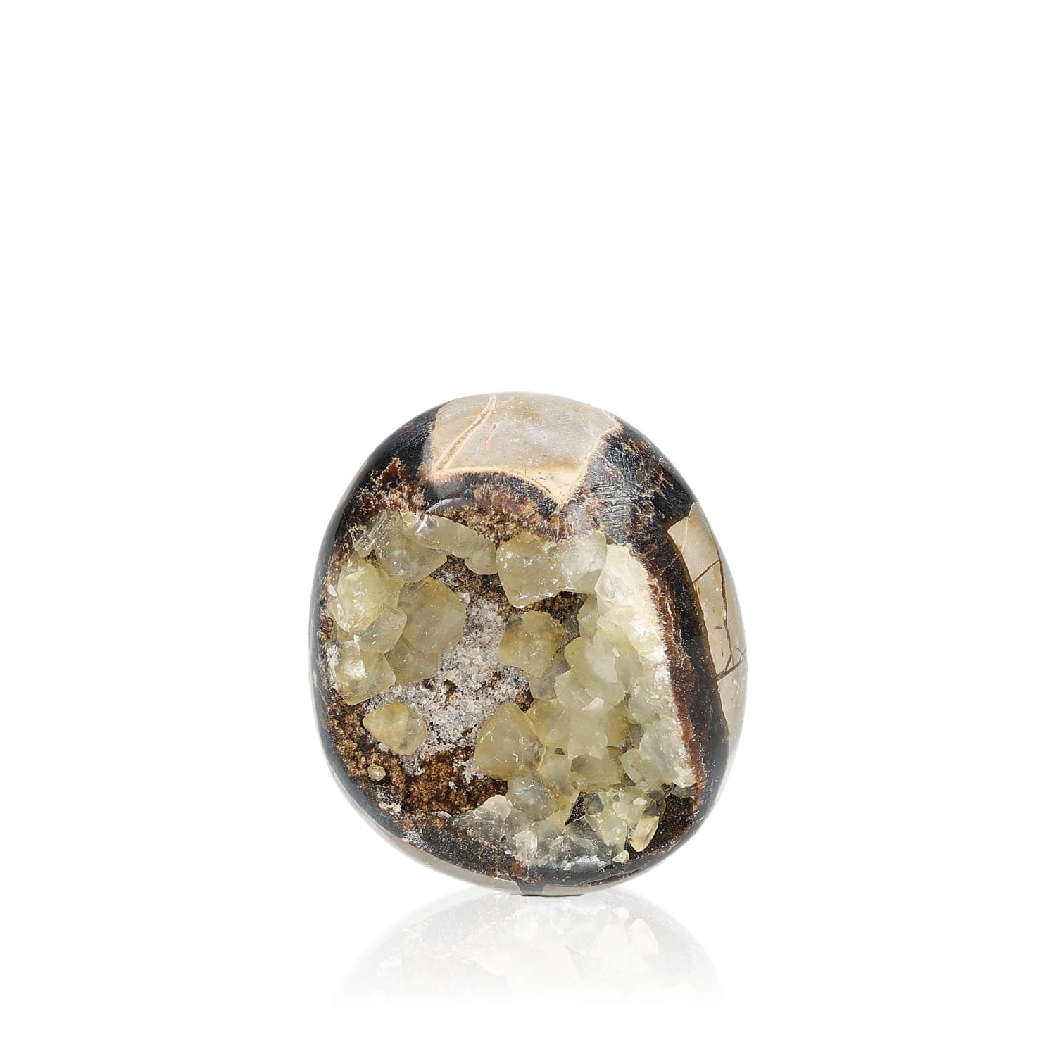 Jajo septariowe może nam mówić o początku tego, co w nas się rozpoczyna, czyli, że potrzebujemy spojrzeć na siebie od nowa, jako na istotę, która poszukuje na powrót swojego kodu, poszukuje tego, co ma właściwie zrobić. Forma jaja, które ma rodzaj tego, co ma jajo w sobie, czyli jakie ma zgromadzone wszystkie niezbędne zasoby do tego, żeby odkryć swoją drogę przeznaczenia, żeby pękła ta skorupa i żeby rzeczywiście z jaja wykluło się coś, z tego ziarna powstało życie, moje życie, dokładnie moje, nie jakieś tam, na czyichś zasadach czy z czyichś rodziców, tylko moje. Nawet, jeżeli moje zasoby były z jakichś ściśle określonych substancji, to to, co powstaje, jest absolutnie cudem.To jest właśnie smocze jajo. Powstajemy z tego jako ludzie na nowo, potrafimy się wtedy osadzić w swoim życiu, w sobie, że słyszymy, czujemy swój kierunek. Możemy do końca życia nie wiedzieć, że jesteśmy jakimś mistrzem od czegoś, ale chodzi o to, żeby już pójść w swoim kierunku, czyli zacząć robić to, co się lubi dokładnie teraz, w tym momencie, będąc w jakiejś pracy, czy będąc w jakimś stanie jeszcze nie odczuwania swojej ścieżki, to możemy zrobić ten jeden pierwszy krok i on jest najważniejszy, że po prostu już teraz idę swoją ścieżką.