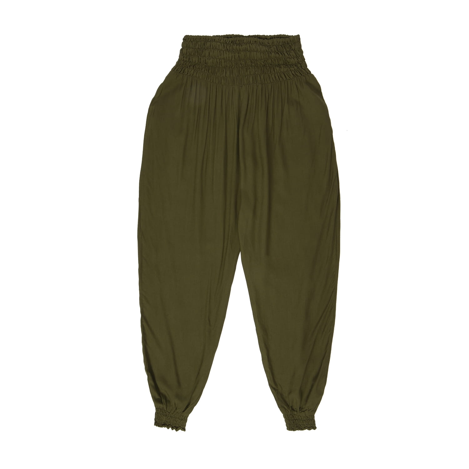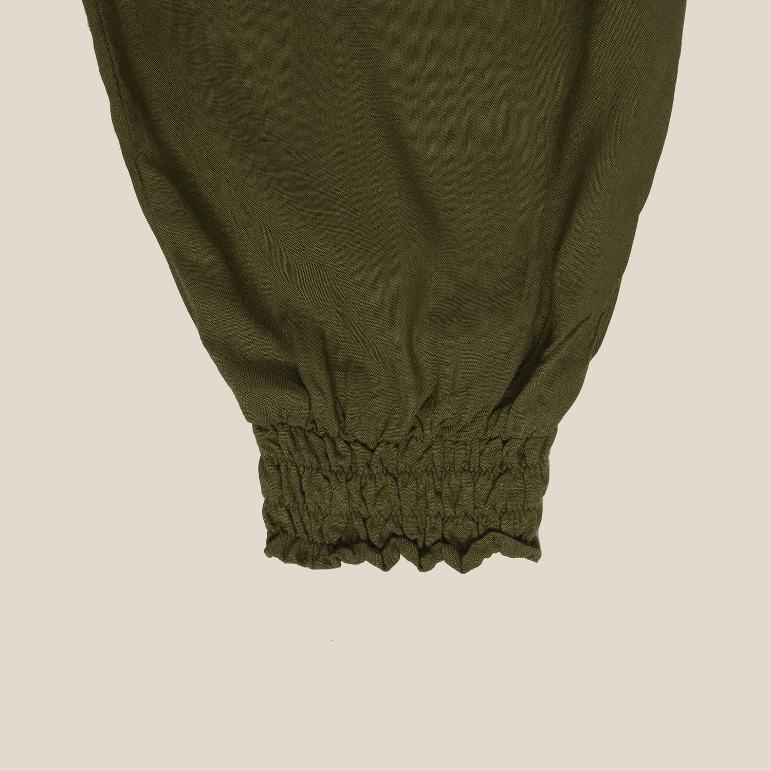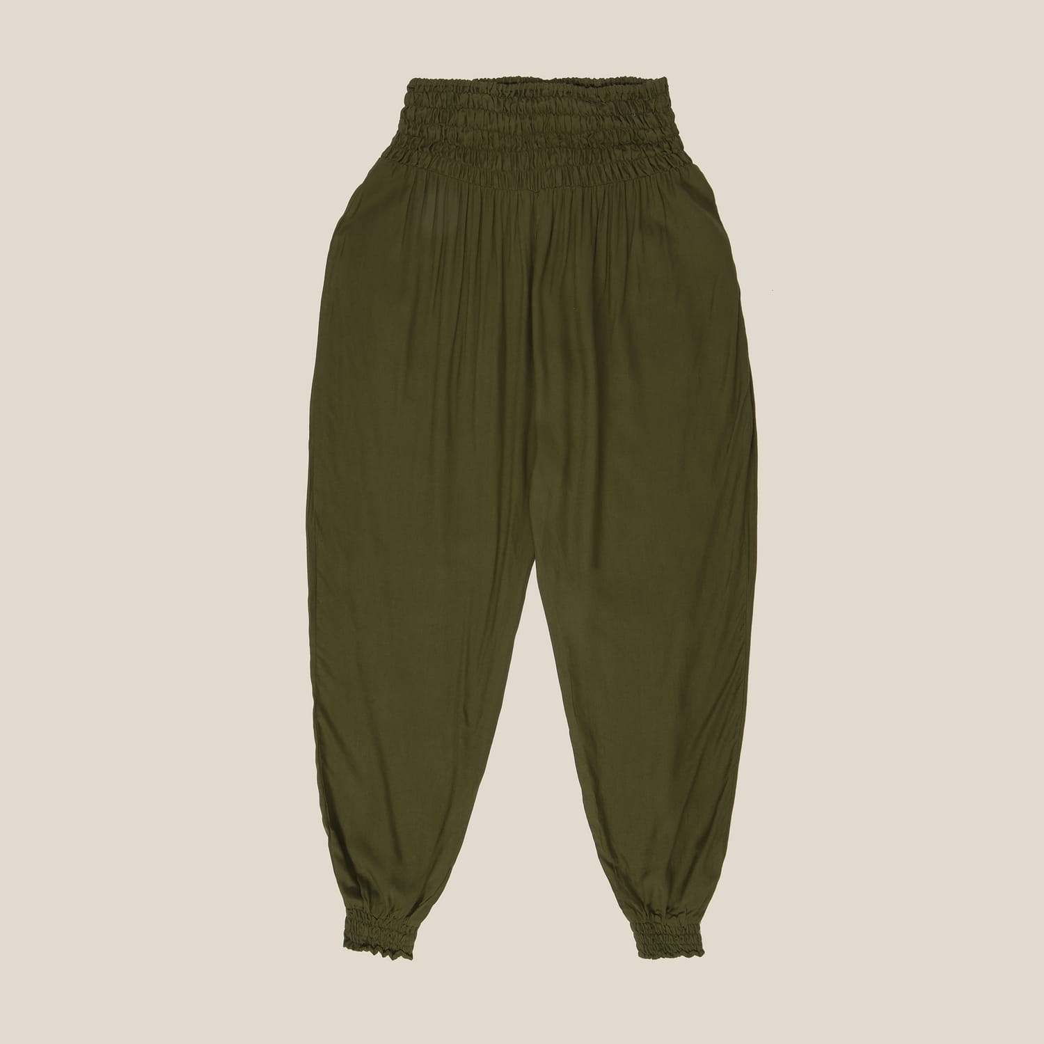 Szarawary uniseks w kolorze khaki.