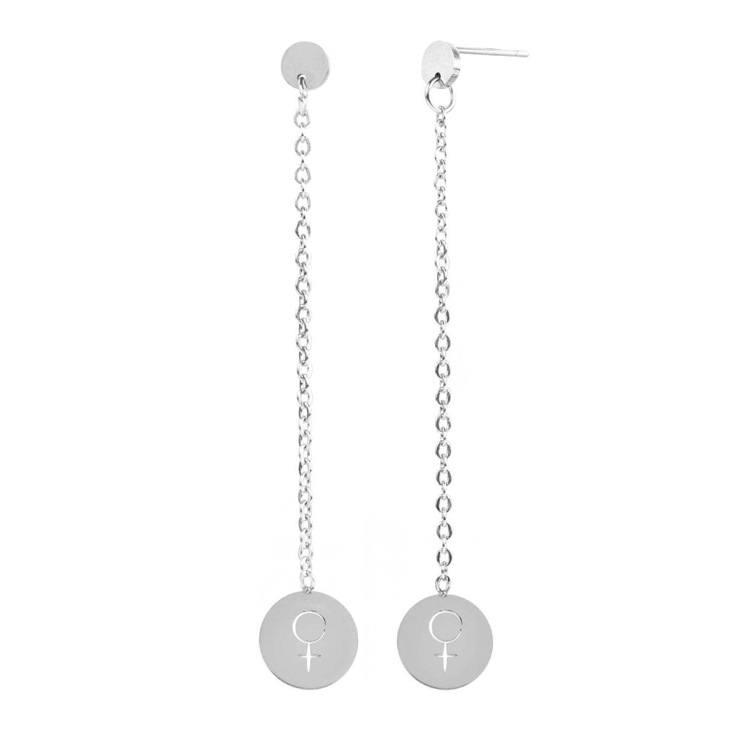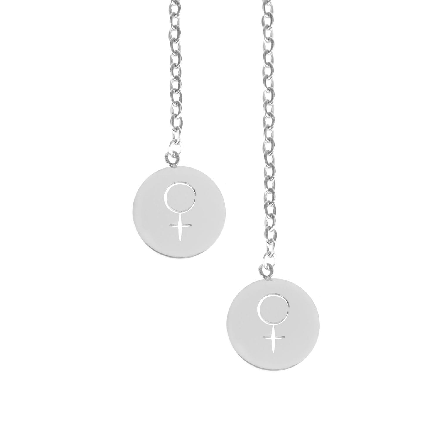 .Kolczyki na łańcuszku wykonane ze stali szlachetnej z symbolem planety Wenus