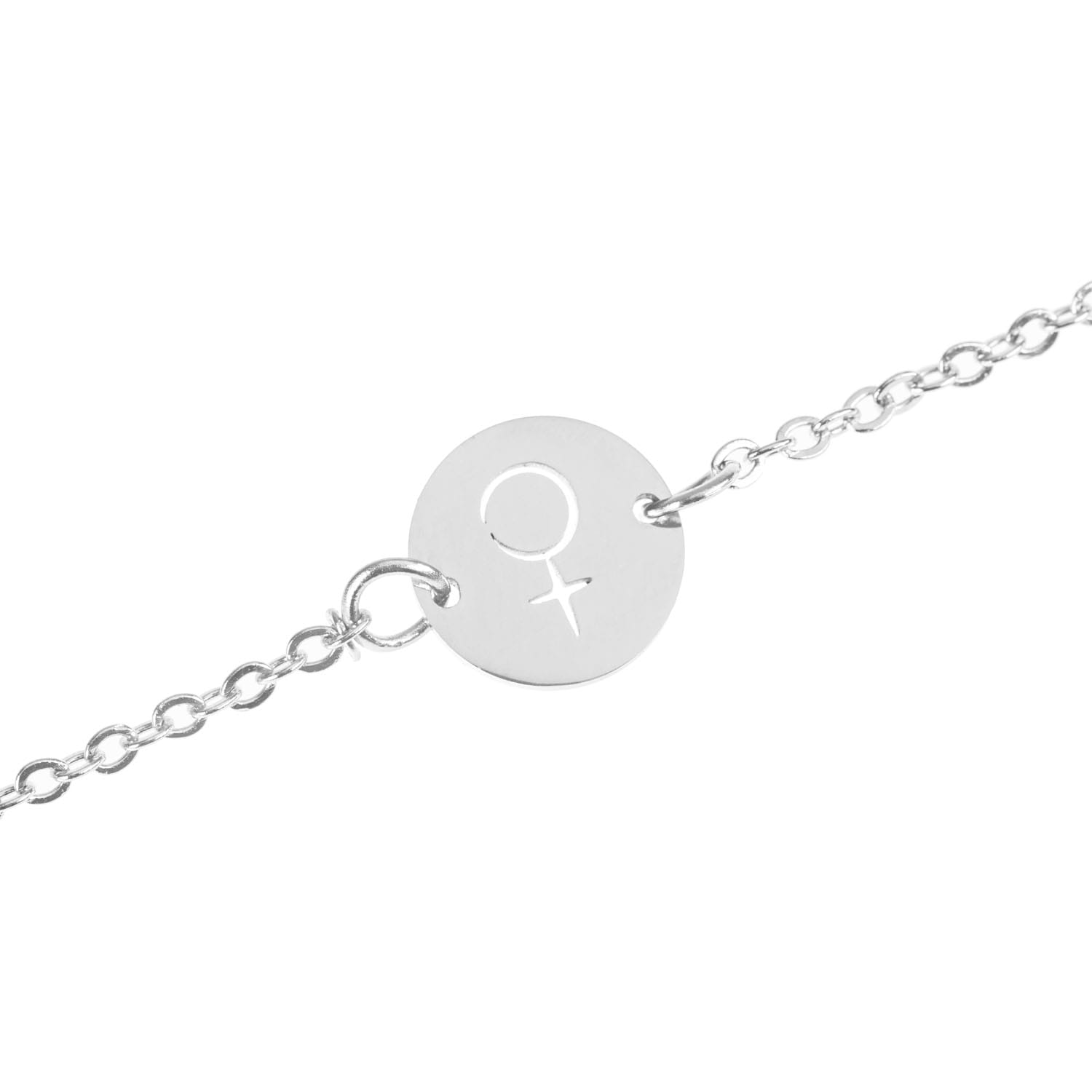 .Bransoletka na nogę wykonana ze stali szlachetnej na łańcuszku o regulowanej długości z symbolem planety Wenus