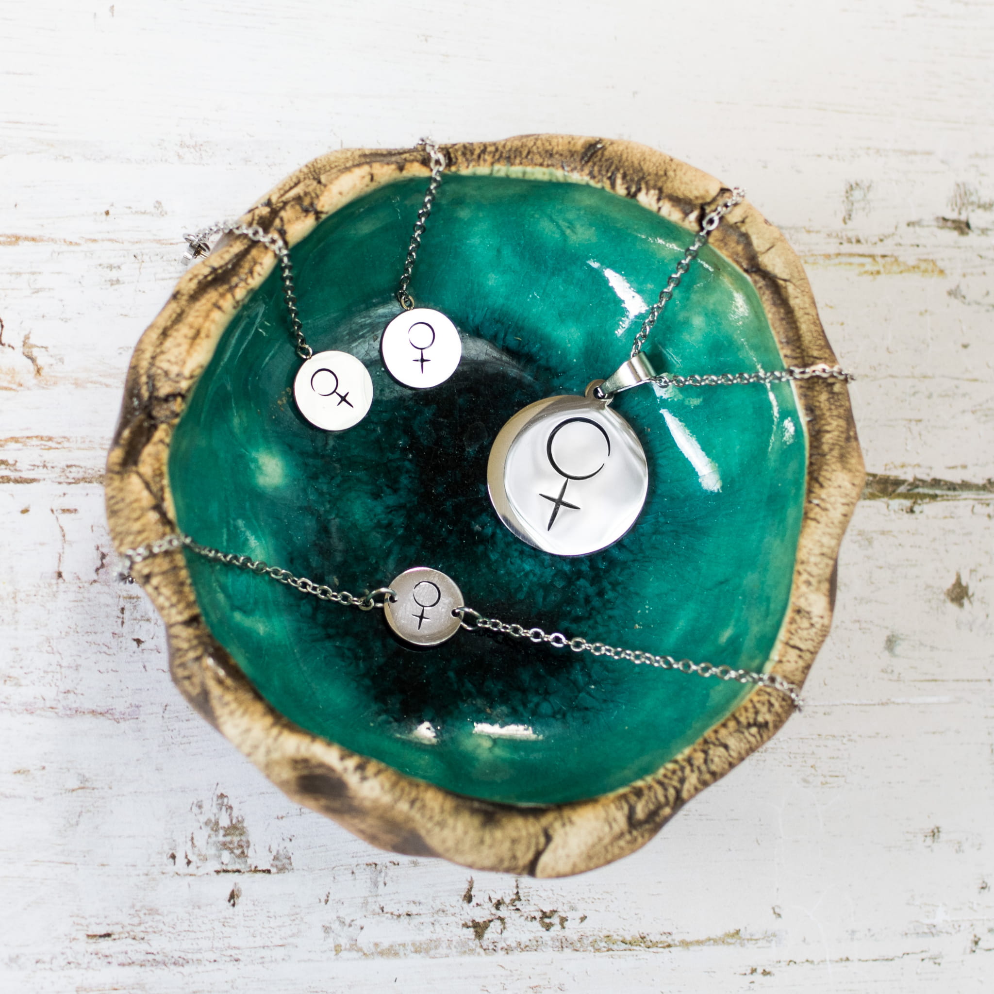 Zestaw naszyjnik - kolczyki - bransoletka z symbolem planety Wenus